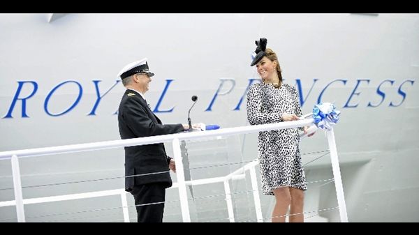(ANSA) - LONDRA, 13 GIU - La duchessa di Cambridge e' madrina per il varo della Royal Princess, nuova nave da crociera costruita dall'italiana Fincantieri. Nel porto di Southampton Kate, con cappellino di piume e un pancione sempre piu' vistoso, …