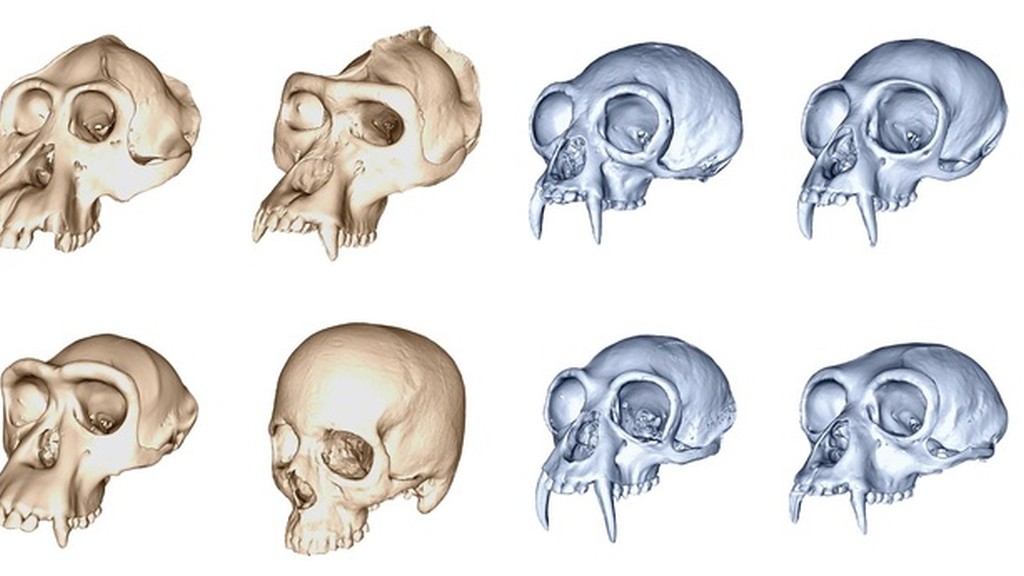 Lo studio ha messo a confronto modelli virtuali tridimensionali dei crani di diverse specie moderne di primati, tra cui sette ominidi o 'grandi scimmie' (come u mani, gorilla e scimpanzé ) e nove specie di ilobatidi o ' scimmie minori' (come i gibboni ), che si sono separati evolutivamente circa 20 milioni di anni fa.