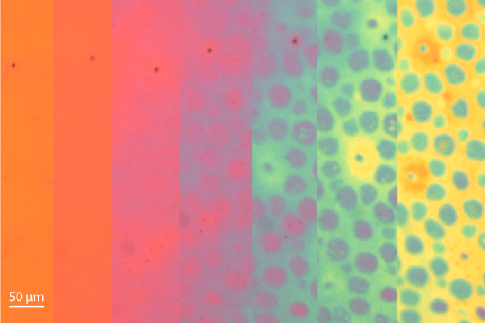 Ottenere un controllo dinamico sull'aspetto di un materiale rimane una sfida. Per affrontarla, gli autori dello studio coordinati da Mark Brongersma hanno preso ispirazione dalla pelle del polpo per mettere a punto delle sottili pellicole che possono essere programmate per modificare colore e consistenza : inizialmente piatte e uniformi, quando sono esposte all' acqua le pellicole si gonfiano rivelando nuovi disegni colorati . Tali disegni sono stati incisi utilizzando fasci di elettroni .
