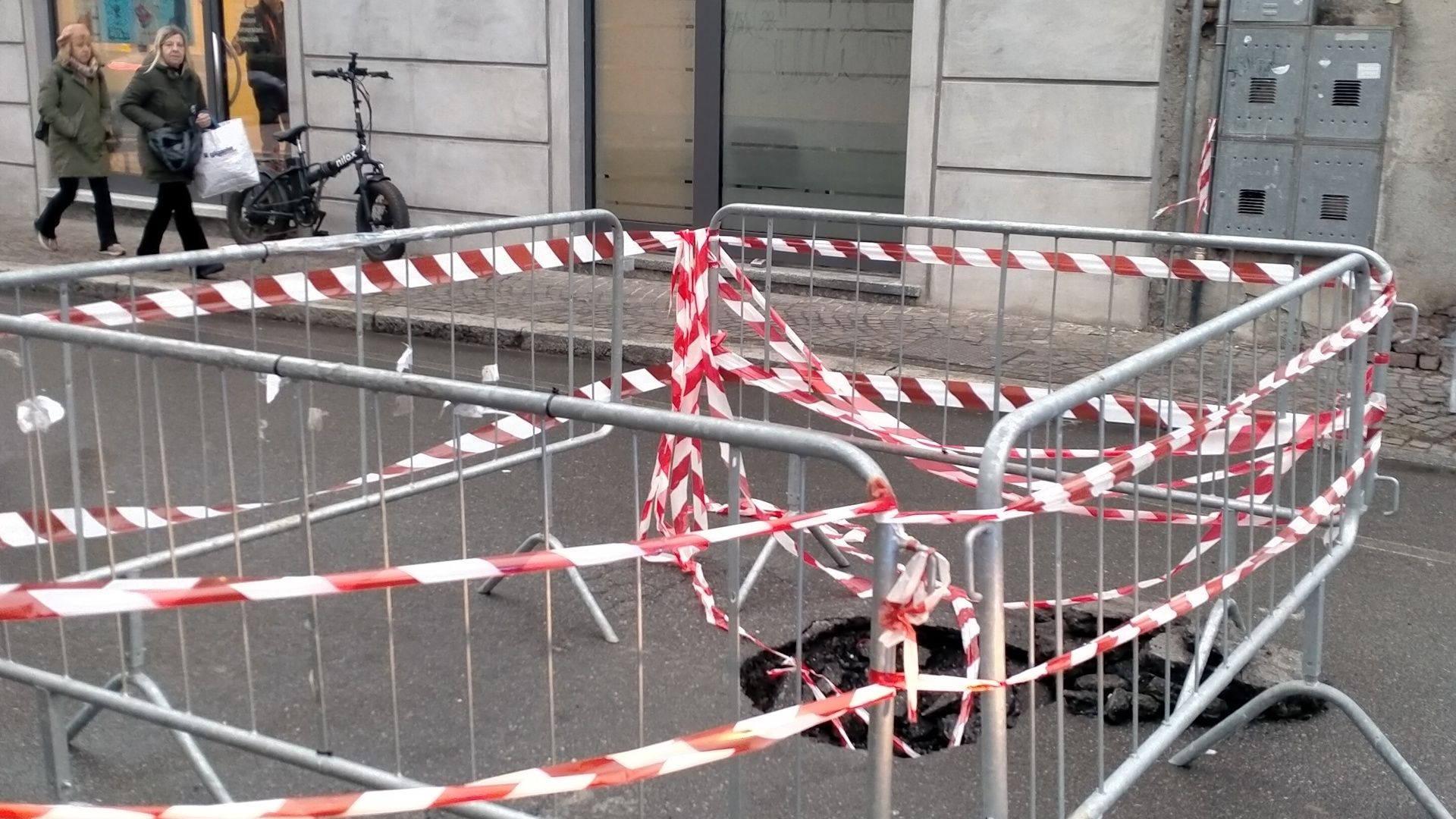 Una voragine aperta nell’asfalto ha riscritto la viabilità in pieno centro a Mariano. Da ieri pomeriggio, infatti, via Emanuele d’Adda è chiusa al traffico nel tratto compreso tra lo stop che regola l’uscita dal palazzo del Comune sino a piazza Roma. Questa la soluzione adottata per mettere in sicurezza l’area sino a termine dei lavori che partiranno lunedì quando ComoAcqua, la società che gestisce il servizio idrico in provincia di Como, scaverà nel terreno per capire le cause del cedimento, sicuramente non legate a guasti ai tubi delle acque pulite, ma più probabilmente dettate dalla rete fognaria o qualche allaccio privato. Sul posto ieri è intervenuta anche una pattuglia della Polizia locale che, transennata la profonda buca, ha affisso i cartelli di divieto d’accesso alla via.