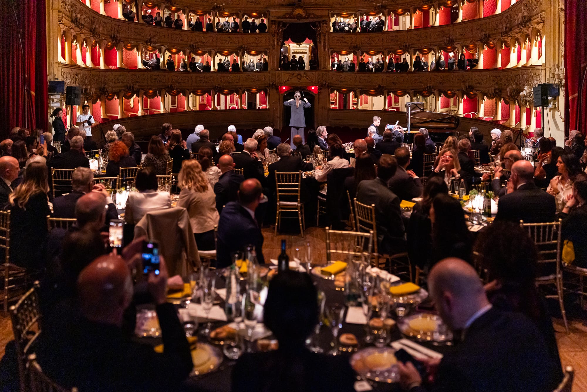 Ad aprire la cena è stato un video con i volti di chi vive ogni giorno questi percorsi. Dopo i saluti di Michele Tomaselli e Giuliano Sollima, responsabili dell’Ente, di Erasmo Figini, tra i fondatori di Cometa, e di Giovanni Figini, preside della Scuola Oliver Twist, l’apertura del sipario ha svelato i tavoli predisposti sul palco. I bambini di “Una Casa per Crescere” di Cometa hanno invitato gli ospiti a salire: un gesto semplice, ma capace di dire che i protagonisti della serata erano proprio loro, insieme alle tante storie di fatica e ripartenza che attraversano il territorio.