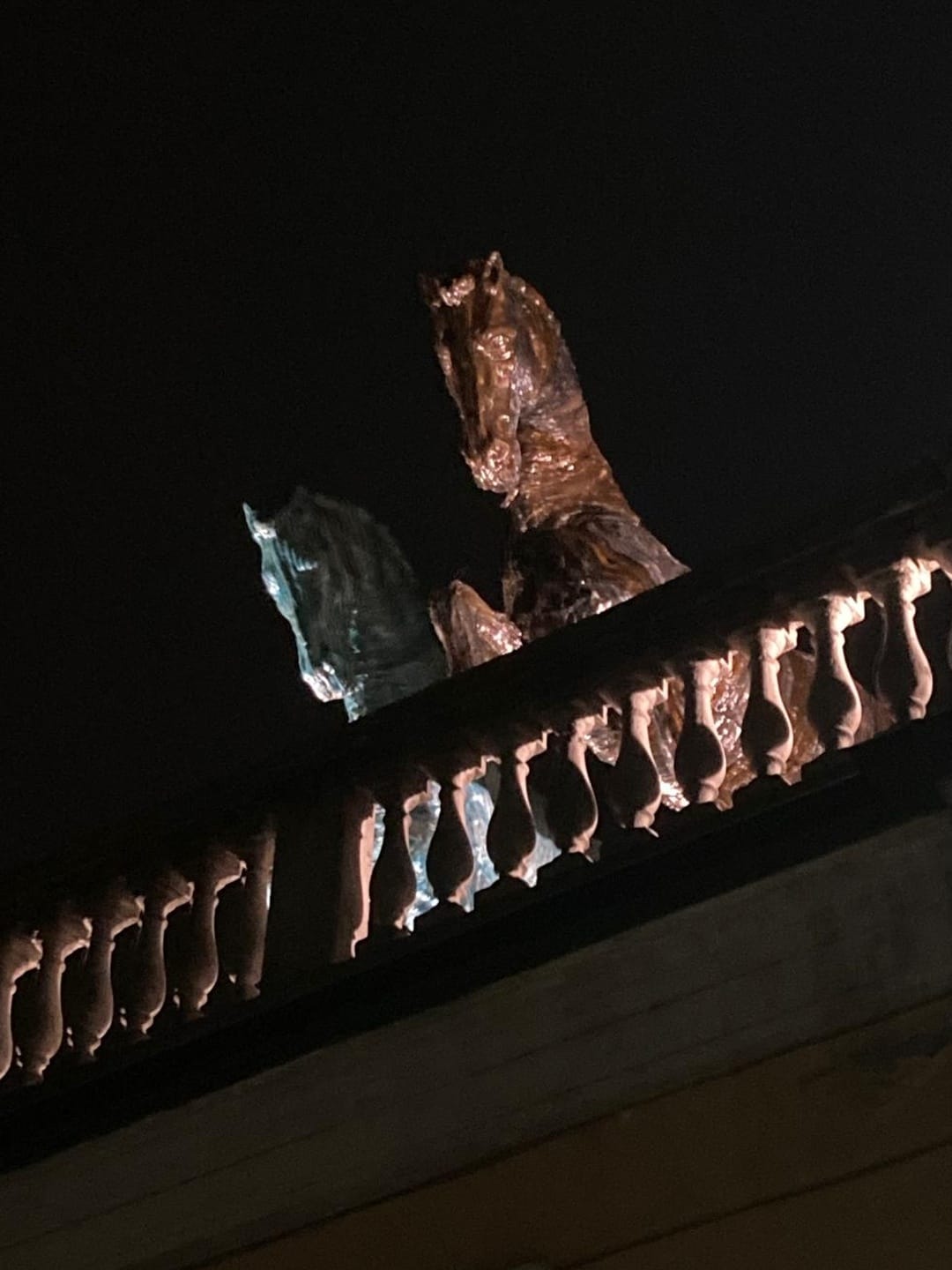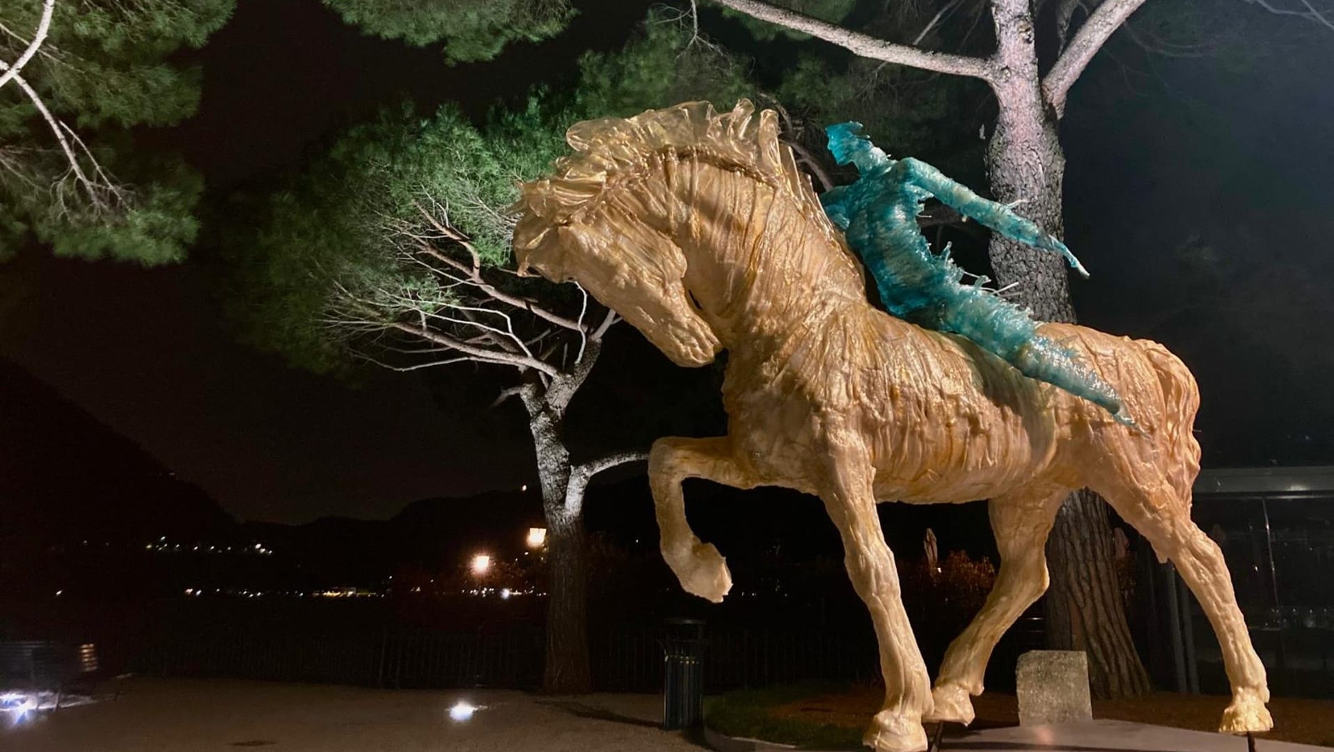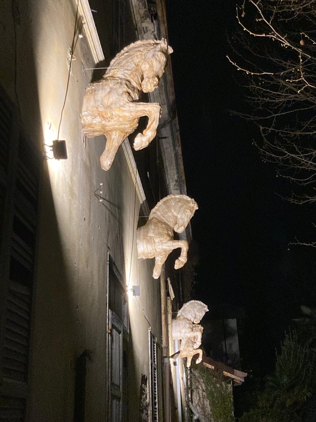 La notte mi piace di più. Le opere offrono un rimando fantastico, come nel caso delle teste dei cavalli sull’ex cinema, che diventano un tutt’uno. Credo sia questa l’installazione più riuscita