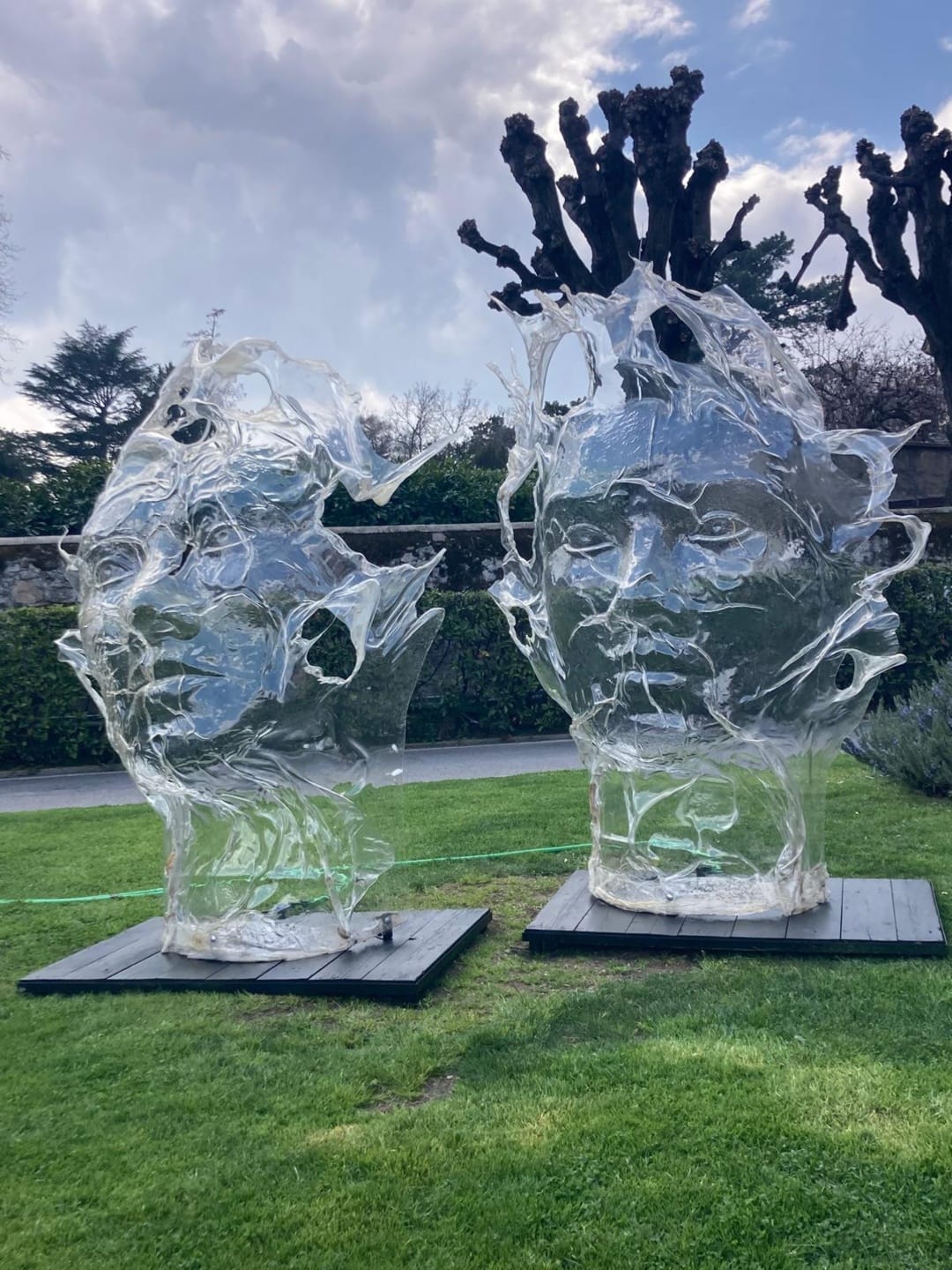 Scrivo sempre una drammaturgia e le opere , come ha sottolineato la curatrice Francesca Bogliolo, “altro non sono che attori che occupano la scena”. Il punto di partenza sono i volti materici vicino a Villa Bernasconi, che rappresentano persone con volti segnati dalla vita e dal tempo. Siamo noi che ci mettiamo in comunione con gli altri.