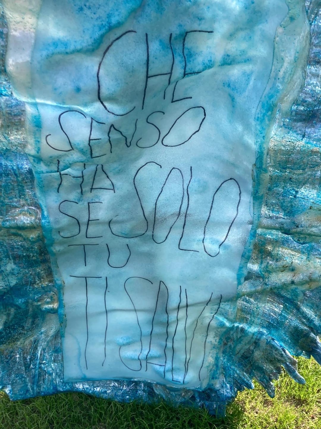 Il mio percorso mi ha portato a impiegare lo scarto industriale del policarbonato e del plexiglas, come “materia prima” o mixando metalli come rame, fil di ferro e rete metallica. Il materiale di scarto ha un suo percorso, mai ideale: a volte è troppo fine, altre si gonfia, si opacizza. Non sai mai cosa ti aspetta, a volte ti sorprende: il 50% dell’opera lo fa il materiale. Lo scarto ha in sè bellezza, ha dentro l’anima dell’opera, come il marmo.