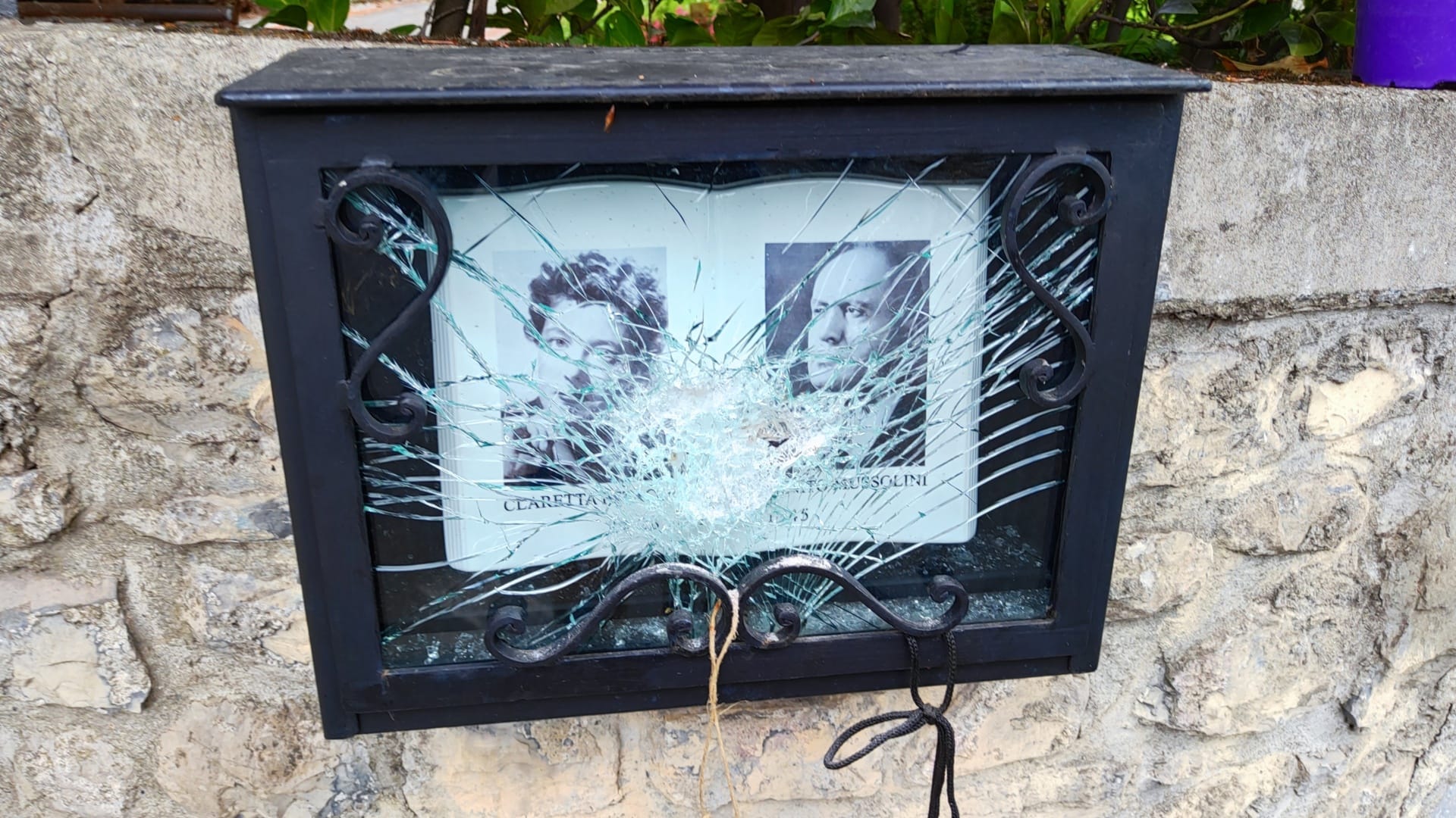 «Quindi un monumento a Mussolini nel luogo in cui è stato fucilato da tre partigiani viene ritenuto un bene pubblico e non un’apologia di fascismo». Il danneggiamento è avvenuto nella notte del 28 aprile 2023, data in cui nel 1945 vennero fucilati Benito Mussolini e Claretta Petacci. La teca posta sul lato destro del muro perimetrale di Villa Belmonte è stata poi danneggiata una seconda volta (gesto compiuto, al momento, da mano ignota) il 1° luglio scorso.